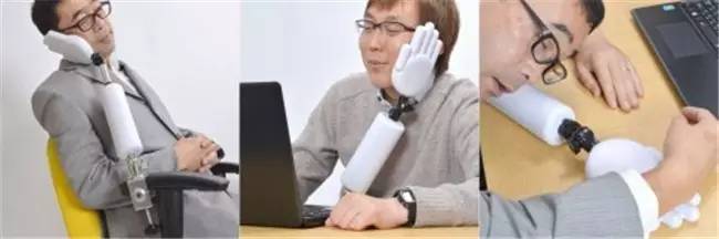 还有这个,设计师发现,人们常常用手托住下巴休息,但是这样就只能一只手工作了。如何两全其美,便设计了这款手撑托。造型是有些奇葩,像是莫名被人拍了一巴掌,但是非常多功能,小憩休息也适用呢。看过这两款设计之后还会觉得小编又冤枉他们吗?