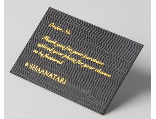 皮具是一种比较高档的商品,皮具包包、皮具鞋子啊等等这些都经常会被人们当作礼物送给他人,而作为皮具吊牌当然也不能太low拉低了这商品本身的level了。像上图这样的皮具吊牌配得上那些皮具商品,皮具吊牌定制首先得知道自己产品的定位,知道什么样的皮具吊牌适合自己的商品,然后就是寻求一个靠谱的吊牌厂家合作。这款皮具吊牌采用的材质是黑卡纸,黑卡纸本来就是可塑性较强的材质,做出来的效果也比较高档,不用担心吊牌low,烫金工艺更是给吊牌锦上添花,高大上得不要不要的。而皮具吊牌上的纹理则增添了它的质感,让消费者在触摸到它的时候有很好的体验,增加他们对商品的好感。