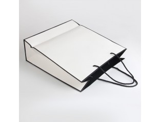 骏业包装厂定制的礼物纸袋采用250g单铜纸,双色印刷,过哑胶。手提纸袋设计提手处采用黑色PU皮打鸡眼,提高了纸袋的承受力,白色和黑色的经典搭配,简约大方。广州骏业包装定制的手提纸袋,跟进客户要求和产品属性量身定制,采用优良材质打造出中高档手提袋。