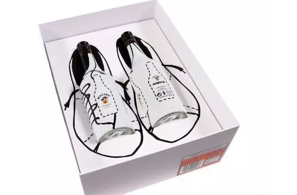将虚拟的鞋子与同色的瓶子完美的结合在一起,新颖又充满设计感,人在打开鞋盒时,惊奇的发现礼物竟然是两瓶饮料,意外又不可思议,也绝对是整蛊朋友的好玩具。