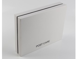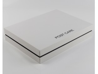 此款服装包装盒,采用157g铜版纸裱1000g灰板,商标烫黑金,围边内盒采用黑卡纸裱灰板。此款衬衣包装盒,选用书本式的书型盒,既增加了盒形的美观程度,又增强了盒体的牢固程度。衬衫包装盒,选用经典的黑白搭配的对比鲜明又简洁,给人一种大大方方的爽利感觉。