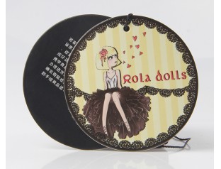 我们常见的服装吊牌一般都是长方形的,但是有时候为了配合服装的风格,又或者是想要一些创意的、美观的效果人们会选择圆形的服装吊牌;可以看到这个服装吊牌虽小,但是却也很精致,吊牌上的插图满满的少女风,很多人见到这吊牌应该都会挪不开腿了吧。吊牌定制选用CMYK四色彩印工艺,印刷精美、图文清晰,从感官上就给消费者带来良好的用户体验;从展示中也可以看到,这吊牌是精品,如果你需要这样的吊牌,那记得要联系广州骏业包装定制啊,联系热线:020-66677799