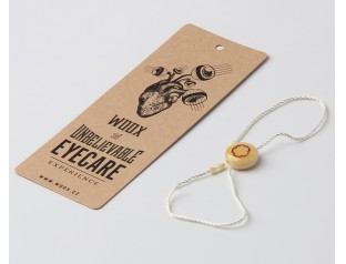 这款牛仔裤吊牌使用原浆纸为主要材料,吊牌表面logo使用CMYK四色彩印工艺,版面排版整洁,即使是很多字也不会让人觉得乱糟糟的感觉,凸显品牌质感;