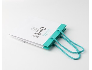 包装袋的颜色搭配也很是巧妙,整个袋子就只有绿、白、黑三种颜色,拎手的绳子颜色刚好和纸袋最上端的颜色一致;