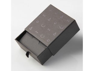 此款首饰包装盒,采用了常见的开合型翻盖盒的款式,材质是pu皮包胶胚,商标烫银。首饰盒包装整体用黑色作为底色,醒目的银色LOGO位于盒子中心,黑白搭配,变得更加简单和朴素首饰盒选用植绒裱EVA内托在保护好产品的同时,也彰显其高档大方。