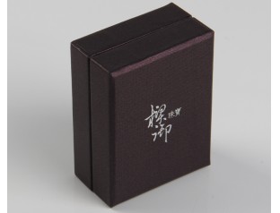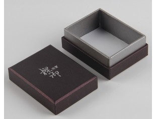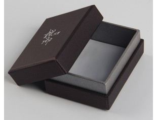 此款珠宝盒包装采用特种纸裱1000g灰板,商标烫银珠宝盒设计天地盖带围边的盒型,围边采用深灰色特种纸裱灰板。广州骏业包装厂定制的首饰盒采用优良材质,流程机械化与人工的结合,量身定制中高端包装盒。