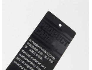此款吊牌印刷,采用了黑卡纸作为主原料,黑卡纸是特种纸的一种,其表面平整光滑,挺度好,拉力好,耐破度高吊牌定制为了彰显其品牌价值,突出公司LOGO,采用了局部UV,使其显得更加立体,更加有质感和艺术感吊牌白色的字体说明,和黑色的主体配合,互相点缀呼应,诠释简约而又低调华丽的特性