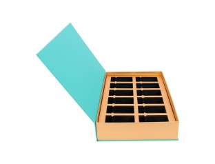此款化妆品礼品包装盒,选用了书型盒的包装盒型,材质则采用157g双铜纸裱1200g灰板,盒子表面过哑胶。书型盒款式的化妆品礼品包装纸盒,简单轻便又结实耐用,是出口外贸的首选包装盒之一。广州骏业包装厂根据客户要求和产品的属性,可以在礼品盒设计方面增加工艺,可以实现UV油和烫金等突出LOGO的设计,简约大方,实现了产品的增值。