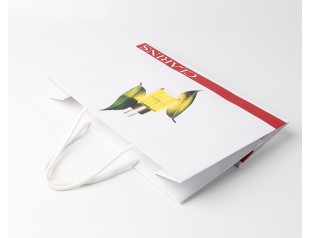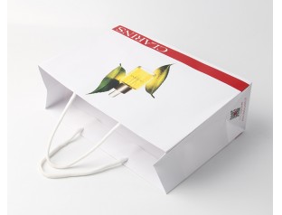 此款纸袋包装采用250g单铜纸,四色印刷,过哑胶,纸袋提手处采用尼龙圆绳。纸袋包装设计走的是小清新风格,以白色作为主打色,印刷其他黄色和红色作为点缀,简约大方骏业纸袋包装采用优良材质,流程机械化与人工相结合,免费设计,量身定制打造中高档化妆品纸袋包装。